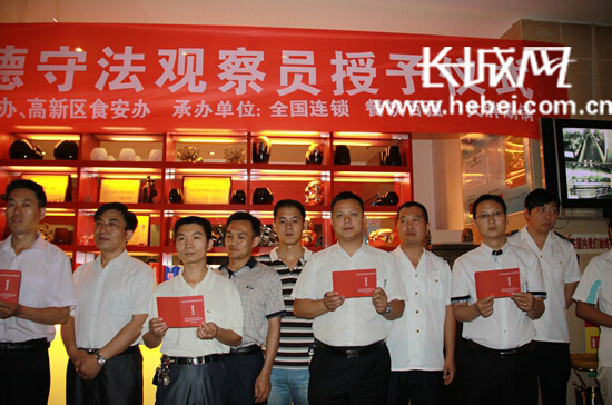 “食品藥品行業(yè)尚德守法觀察員在我市尚屬一項創(chuàng)新性舉措,構建了食品藥品安全監(jiān)管的新平臺,有利于強化市民食品藥品安全意識,增進公眾對食品藥品監(jiān)管工作的參與度,”石家莊市食藥監(jiān)局工作人員說。