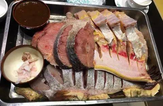 我們指著其中一缸里的魚說:這個多少錢一斤?廚房主廚回答:128元/斤。其實我也不知道那是什么魚,養(yǎng)在缸里看著也很小條,就說要不弄兩條?廚房主廚就立馬用網(wǎng)撈出兩條,看都不給我看一下,立即拍死在案!我還沒回過神呢,說兩條你就弄兩條,我怎么知道那魚一條有多重啊!結(jié)果一稱,兩條魚9斤多!我們就4個大人1個小孩,明顯吃不完呀!老板喊冤