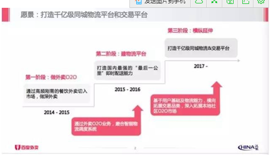 流傳出來的商業(yè)計劃書中,百度外賣試圖把自己包裝為千億級別的同城物流平臺